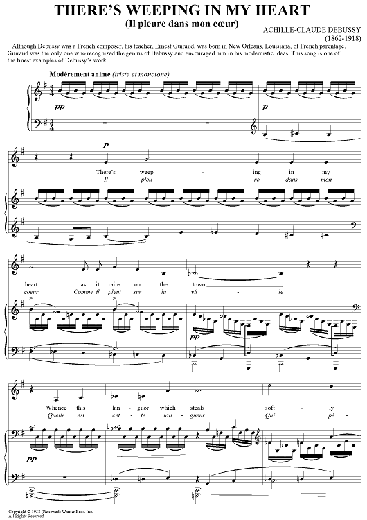 "There's Weeping In My Heart (Il pleure dans mon couer)" Sheet Music by Claude Debussy