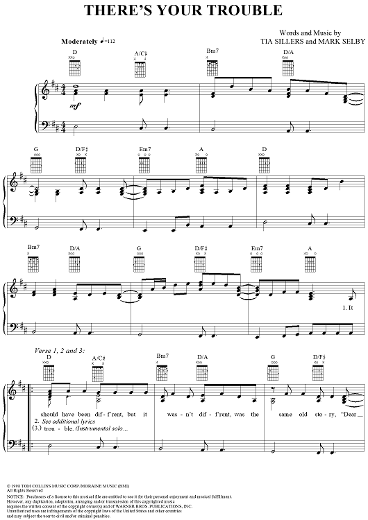 Digital Sheet Music for There's Your Trouble by The Chicks, Tia Sillers, Mark Selby scored for Piano/Vocal/Chords; id:112407