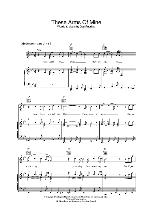 Digital Sheet Music for These Arms Of Mine by Otis Redding scored for Piano/Vocal/Chords; id:391386