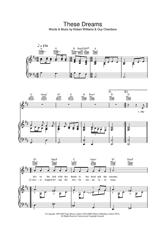 Digital Sheet Music for These Dreams by Robbie Williams, Guy Chambers scored for Piano/Vocal/Chords; id:401261