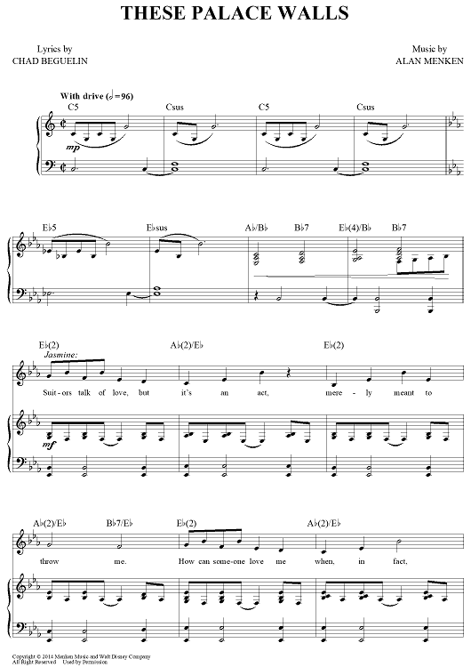 Digital Sheet Music for These Palace Walls by Alan Menken, Chad Beguelin scored for Piano/Vocal/Chords; id:449260
