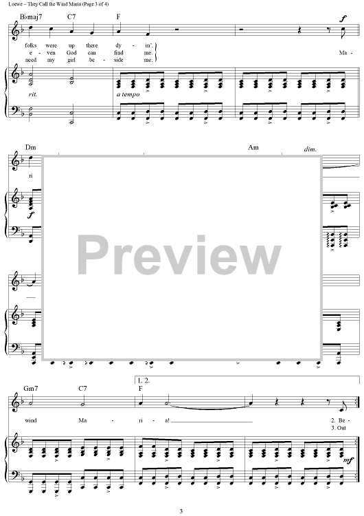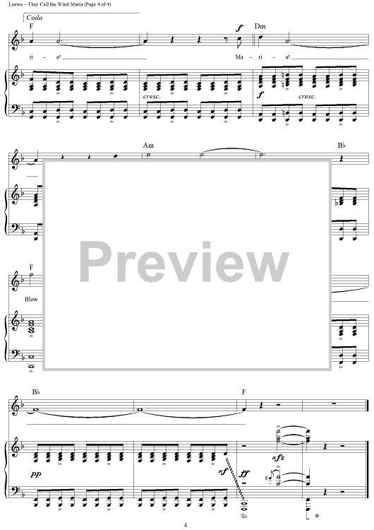 Digital Sheet Music for They Call The Wind Maria by Frederick Loewe, Alan Jay Lerner scored for Piano/Vocal/Chords; id:309966