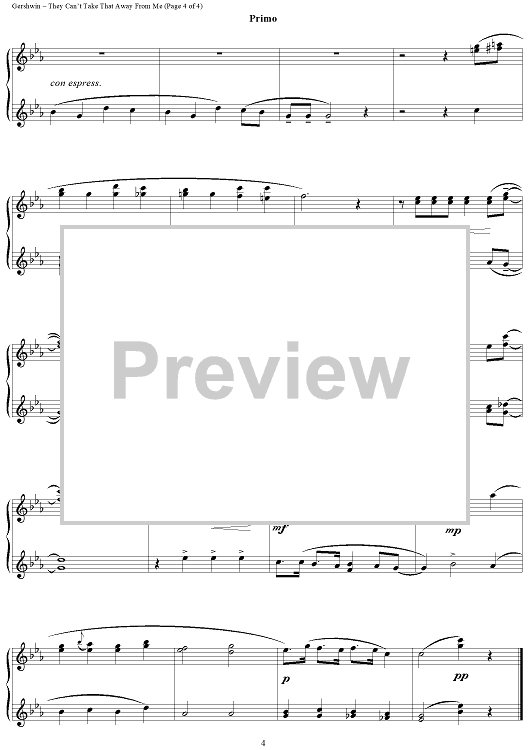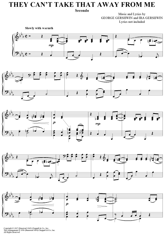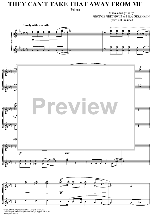 Digital Sheet Music for They Can't Take That Away From Me by George Gershwin, Ira Gershwin scored for 1 Piano, 4 Hands; id:448889