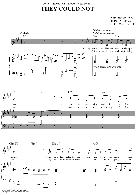 Digital Sheet Music for They Could Not by Claire Cloninger, Sandi Patty, Ron Harris scored for Piano/Vocal/Chords; id:419676