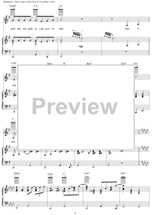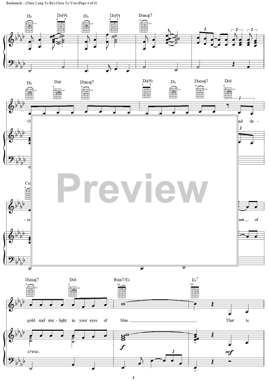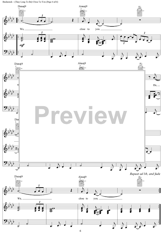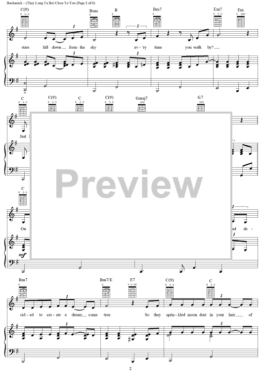 Digital Sheet Music for (They Long to Be) Close to You by Burt Bacharach, The Carpenters scored for Piano/Vocal/Chords; id:276998