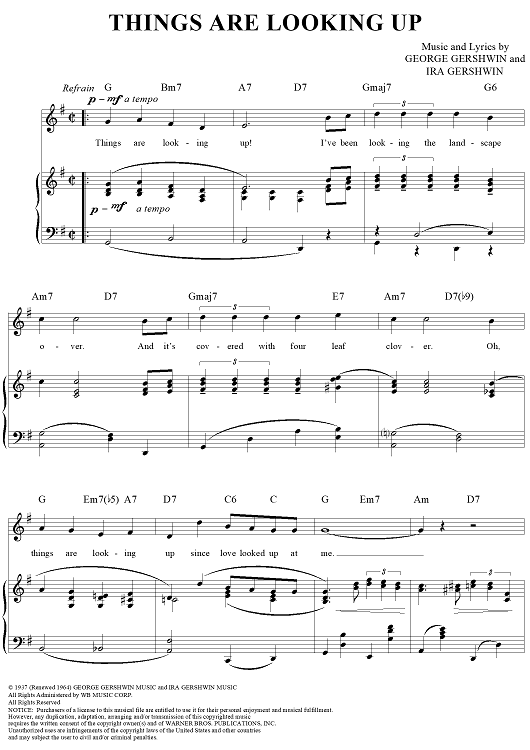 Digital Sheet Music for Things are Looking Up by George Gershwin, Ira Gershwin, Fred Astaire scored for Piano/Vocal/Chords; id:116298