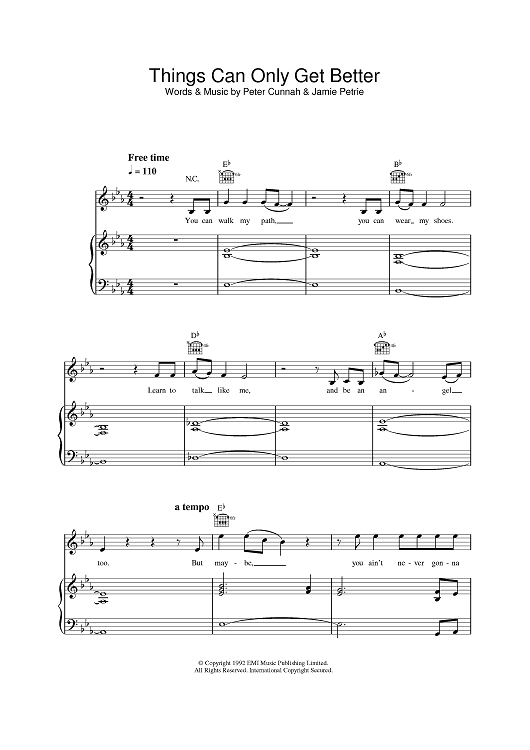 Digital Sheet Music for Things Can Only Get Better by Peter Cunnah, D:Ream, Jamie Petrie scored for Piano/Vocal/Chords; id:388715
