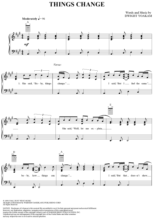 Digital Sheet Music for Things Change by Dwight Yoakam scored for Piano/Vocal/Chords; id:112210