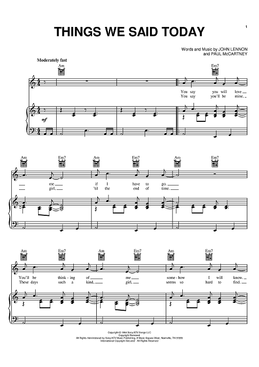 Digital Sheet Music for Things We Said Today by Paul McCartney, The Beatles, John Lennon scored for Piano/Vocal/Chords; id:379479