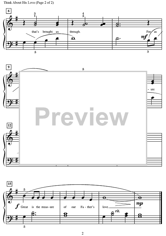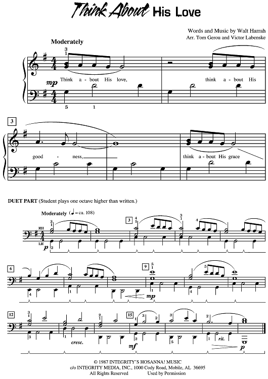 Digital Sheet Music for Think About His Love by Walt Harrah, Tom Gerou, Victor Labenske scored for Piano/Vocal; id:498000