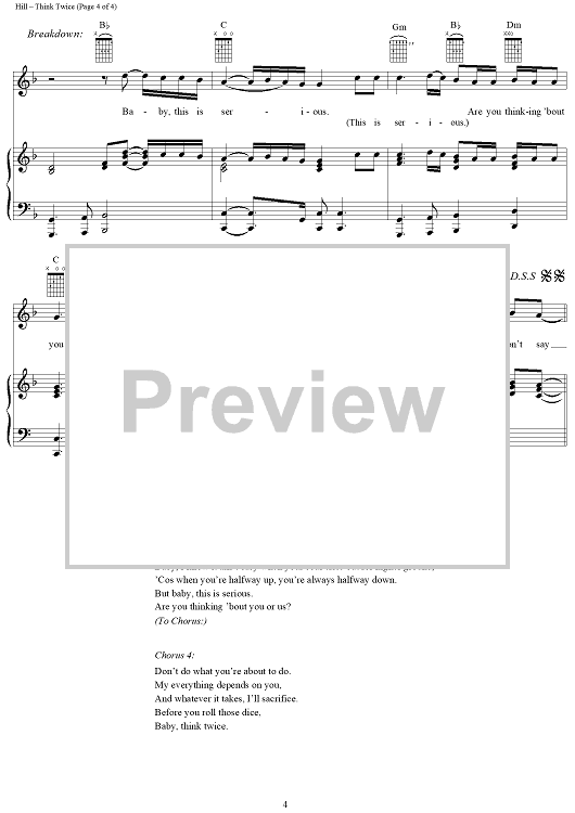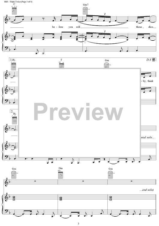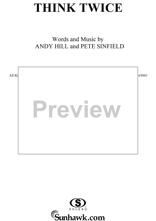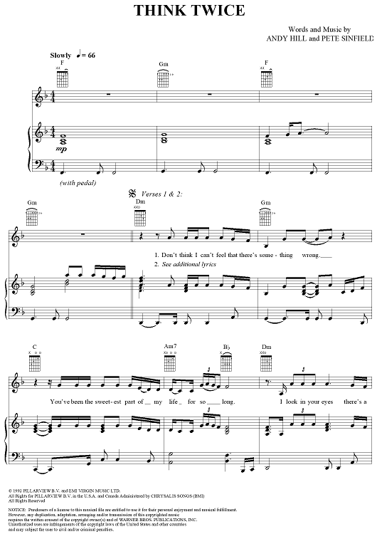 Digital Sheet Music for Think Twice by Celine Dion, Andy Hill, Pete Sinfield scored for Piano/Vocal/Chords; id:120321