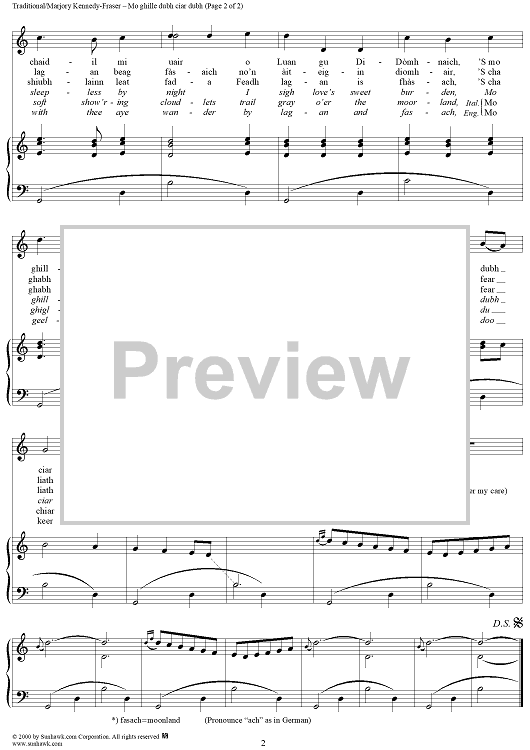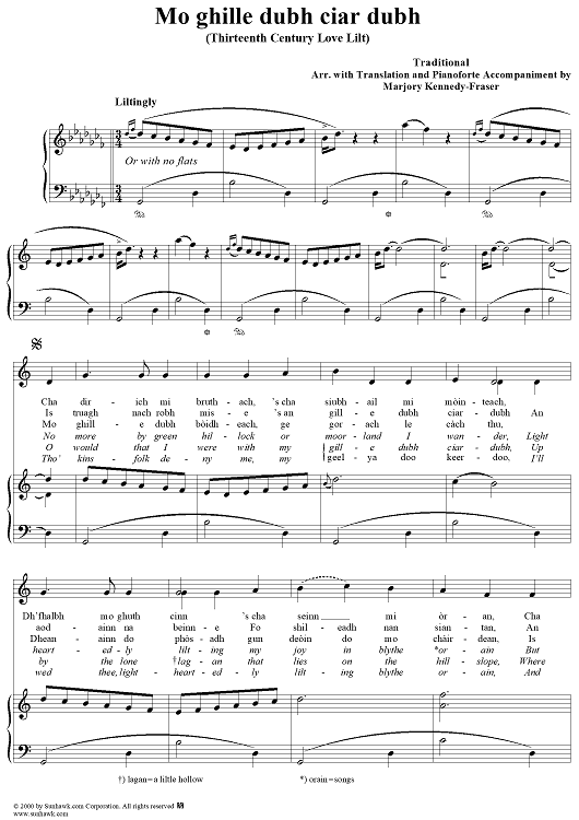Digital Sheet Music for Thirteenth Century Love Lilt, Mo ghille dubh ciar dubh by Marjory Kennedy-Fraser, Traditional scored for Piano/Vocal; id:259655
