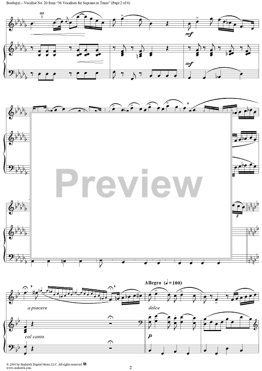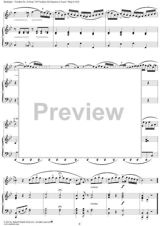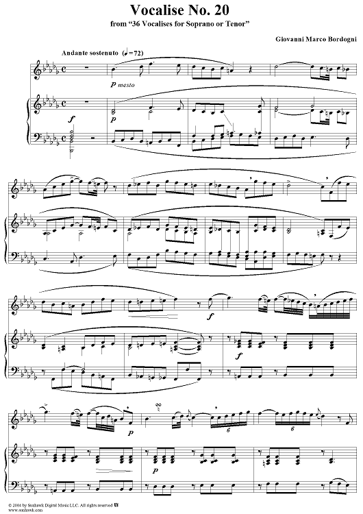 Digital Sheet Music for Thirty-Six Vocalises for Soprano: No. 20 by Giovanni Marco Bordogni scored for Voice/Piano; id:302978