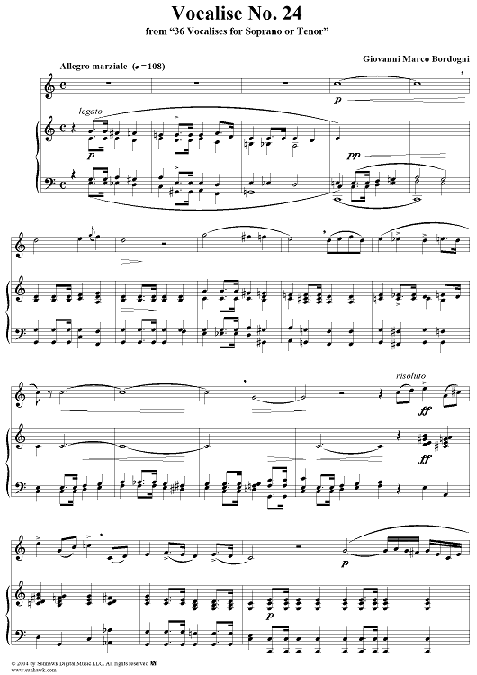 "Thirty-Six Vocalises for Soprano: No. 24" Sheet Music by Giovanni Marco Bordogni