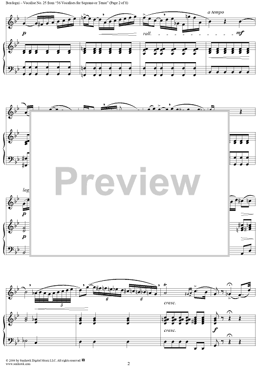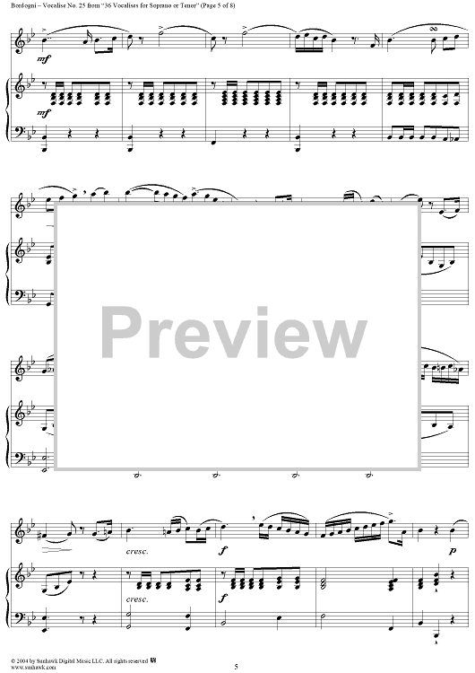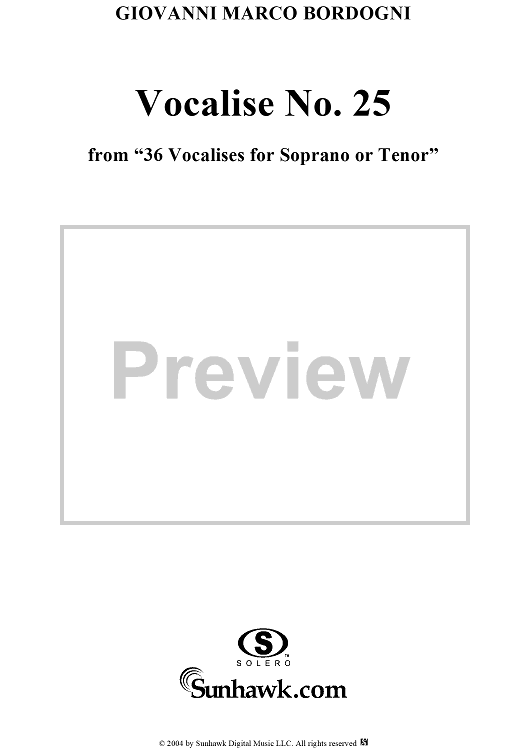 Digital Sheet Music for Thirty-Six Vocalises for Soprano: No. 25 by Giovanni Marco Bordogni scored for Voice/Piano; id:302983