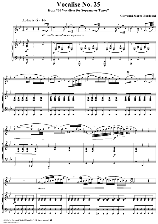 "Thirty-Six Vocalises for Soprano: No. 25" Sheet Music by Giovanni Marco Bordogni