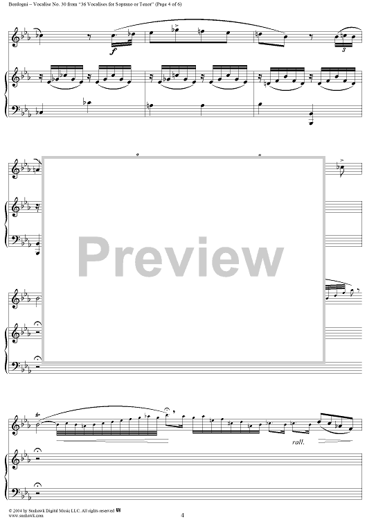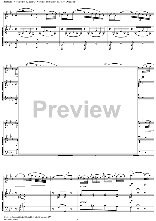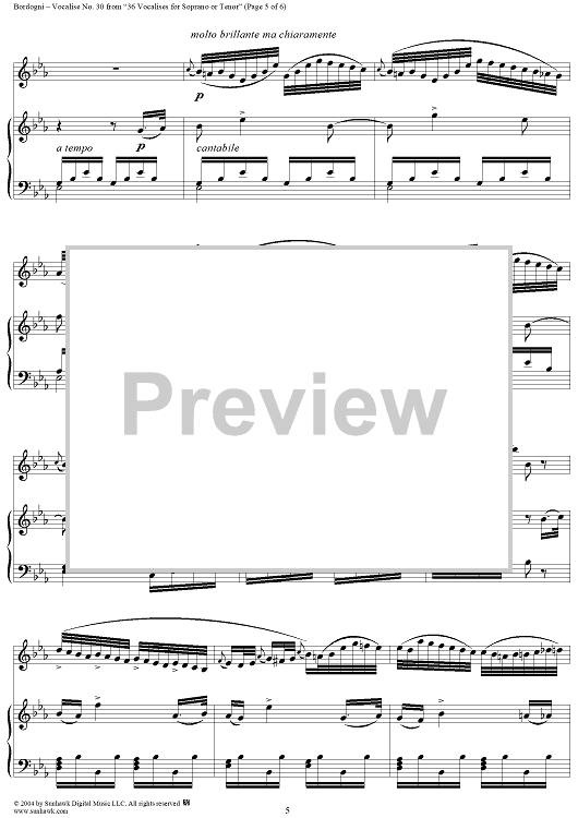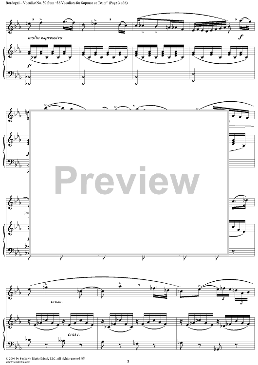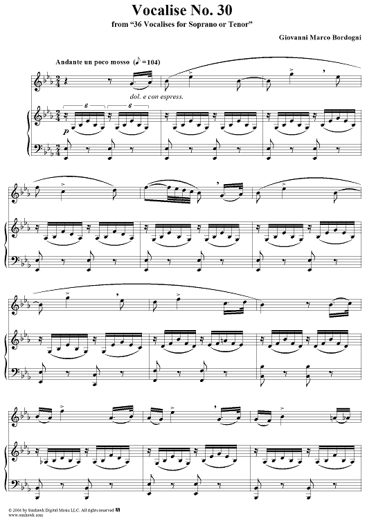 Digital Sheet Music for Thirty-Six Vocalises for Soprano: No. 30 by Giovanni Marco Bordogni scored for Voice/Piano; id:302988