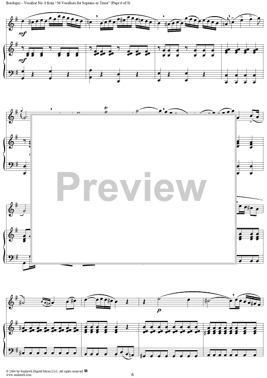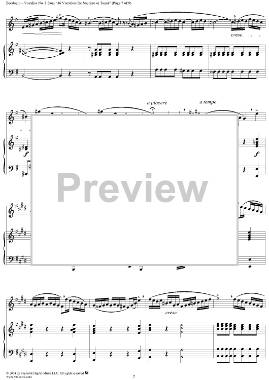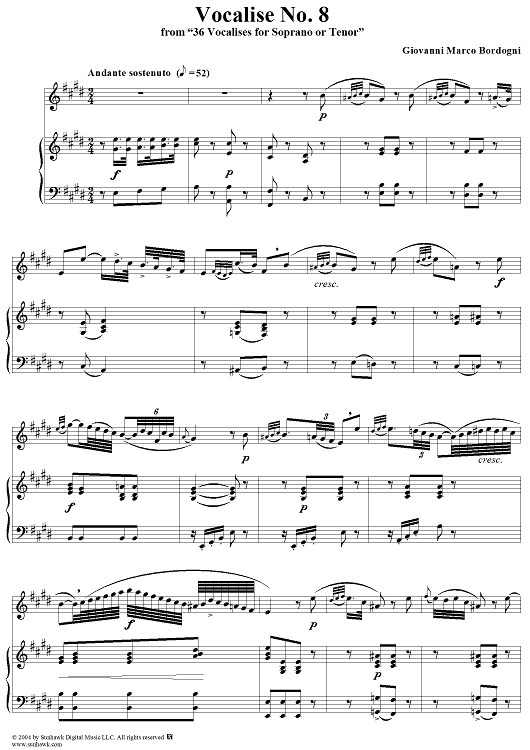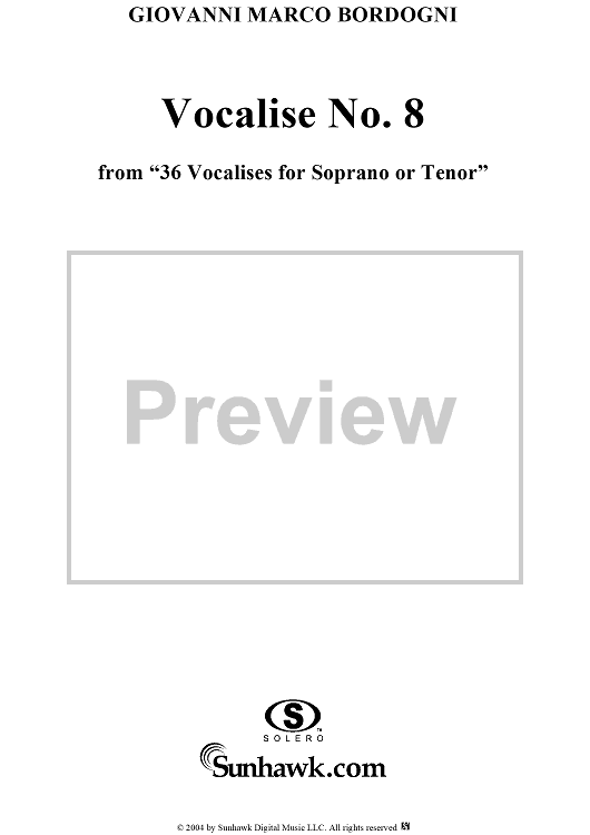 Digital Sheet Music for Thirty-Six Vocalises for Soprano: No. 8 by Giovanni Marco Bordogni scored for Voice/Piano; id:302966