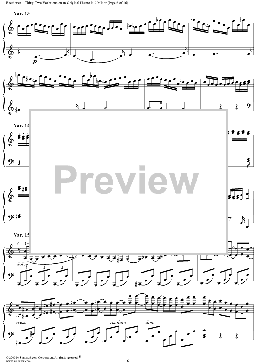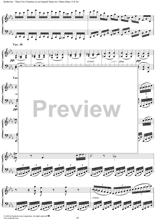 Digital Sheet Music for Thirty-two Variations on an Original Theme in C Minor, WoO 80 by Ludwig van Beethoven scored for Piano Solo; id:251701