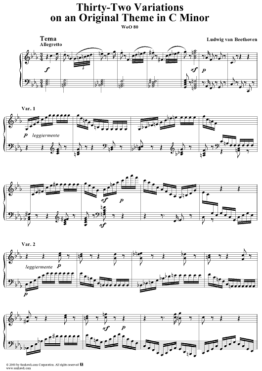 "Thirty-two Variations on an Original Theme in C Minor, WoO 80" Sheet Music by Ludwig van Beethoven