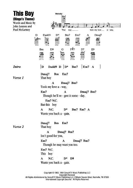 Digital Sheet Music for This Boy (Ringo's theme) by Paul McCartney, The Beatles, John Lennon scored for Ukulele/Vocal; id:466550