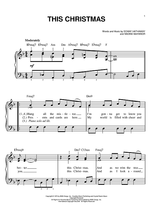 Digital Sheet Music for This Christmas by Nadine McKinnor, Donny Hathaway scored for Easy Piano; id:372235