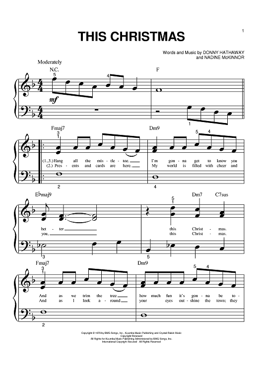 Digital Sheet Music for This Christmas by Nadine McKinnor, Donny Hathaway scored for Big Note Piano; id:374814