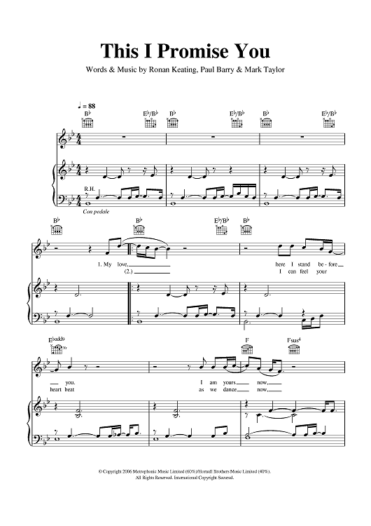 Digital Sheet Music for This I Promise You by Mark Taylor, Ronan Keating, Paul Barry scored for Piano/Vocal/Chords; id:397689