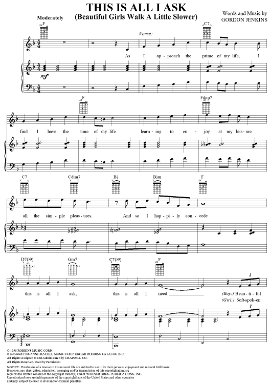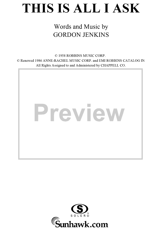 Digital Sheet Music for This Is All I Ask by Tony Bennett, Gordon Hill Jenkins scored for Piano/Vocal/Chords; id:266304