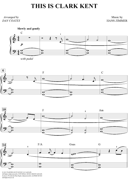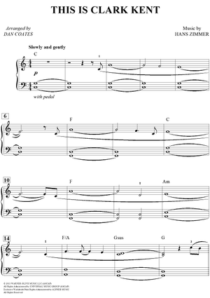 "This is Clark Kent" Sheet Music by Hans Zimmer