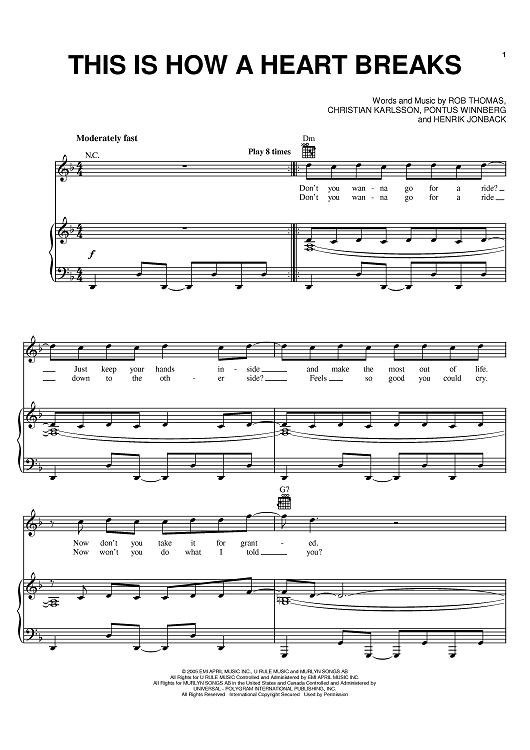 Digital Sheet Music for This Is How A Heart Breaks by Christian Karlsson, Rob Thomas, Pontus Winnberg, Henrik Jonback scored for Piano/Vocal/Chords; id:386732