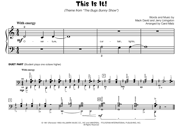 Digital Sheet Music for This Is It! by Jerry Livingston, Mack David, Carol Matz scored for Piano; id:499872