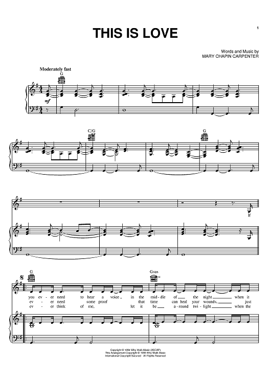 Digital Sheet Music for This Is Love by Mary Chapin Carpenter scored for Piano/Vocal/Chords; id:395960