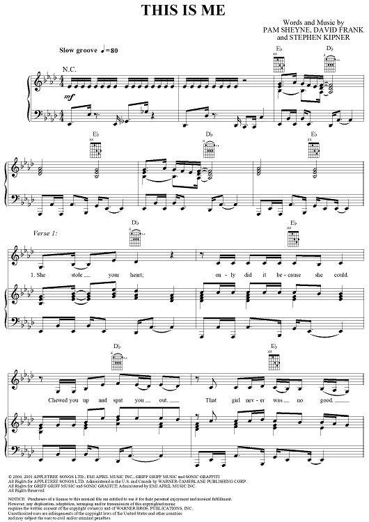 Digital Sheet Music for This Is Me by David Frank, Steve Kipner, Dream (American group), Pam Sheyne scored for Piano/Vocal/Chords; id:283485