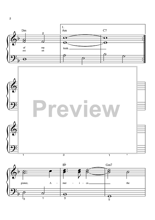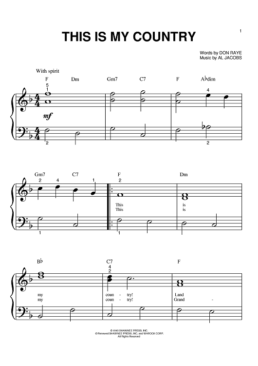Digital Sheet Music for This Is My Country by Al Jacobs, Don Raye, Tennessee Ernie Ford scored for Big Note Piano; id:396851