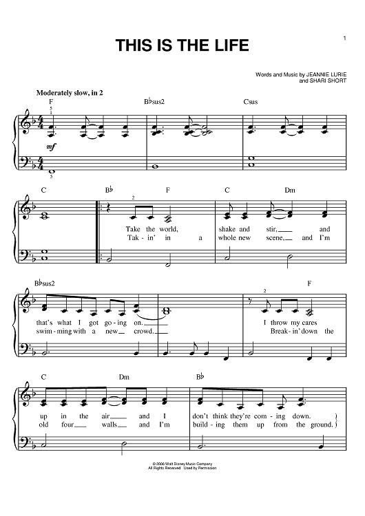 Digital Sheet Music for This Is The Life by Jeannie Lurie, Shari Short scored for Easy Piano; id:402752