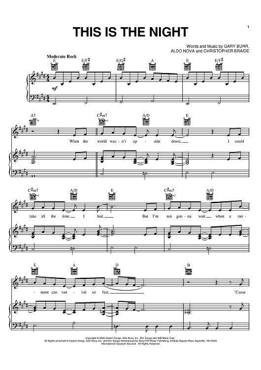 Digital Sheet Music for This Is The Night by Gary Burr, Aldo Nova, Clay Aiken, Chris Braide scored for Piano/Vocal/Chords; id:371914