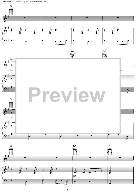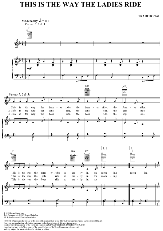 Digital Sheet Music for This Is the Way the Ladies Ride by Traditional scored for Piano/Vocal/Chords; id:289200