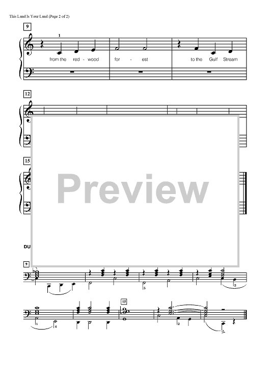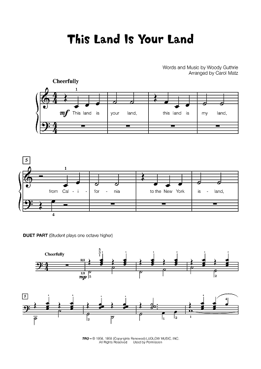 Digital Sheet Music for This Land Is Your Land by Woody Guthrie, Carol Matz scored for Piano; id:451500