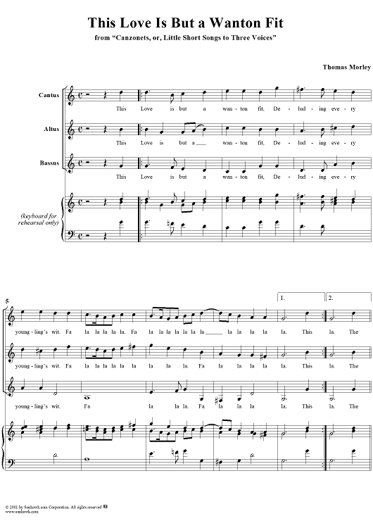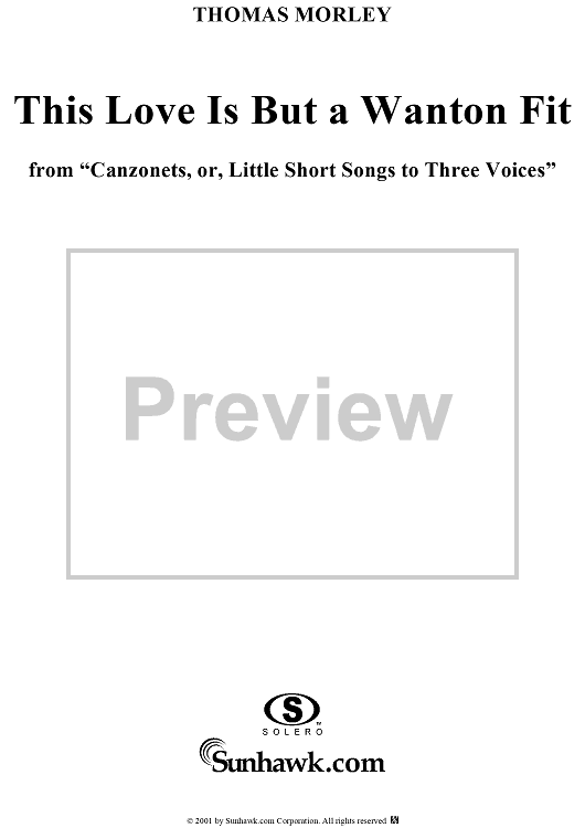 "This Love Is But a Wanton Fit" Sheet Music by Thomas Morley