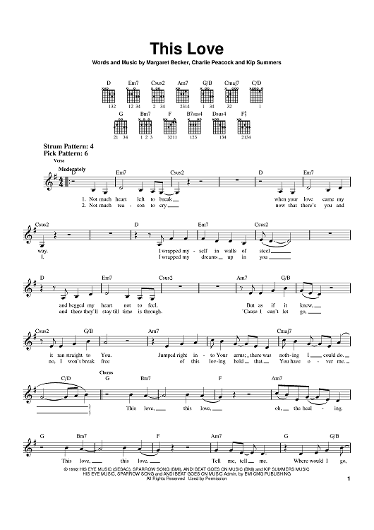 Digital Sheet Music for This Love by Margaret Becker, Charlie Peacock, Kip Summers scored for Easy Guitar; id:398198