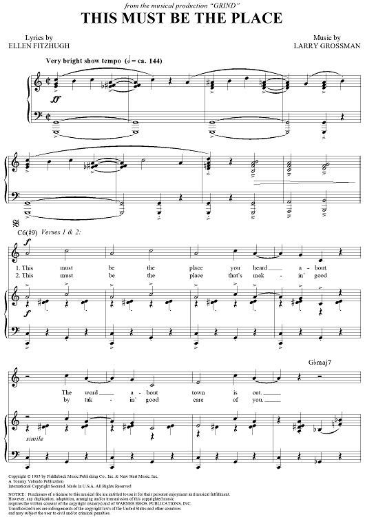Digital Sheet Music for This Must Be the Place by Larry Grossman, Ellen Fitzhugh scored for Piano/Vocal/Chords; id:314299