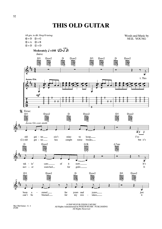 Digital Sheet Music for This Old Guitar by Neil Young scored for Guitar Tab/Vocal; id:359887