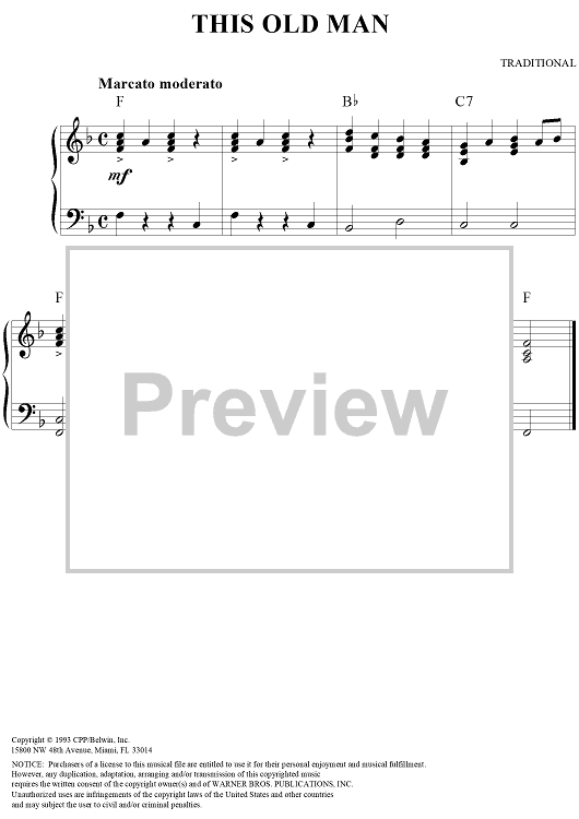 Digital Sheet Music for This Old Man by Traditional scored for Piano Solo; id:261830