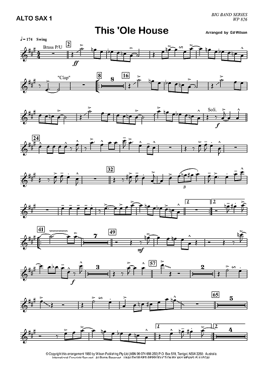 Digital Sheet Music for This 'Ole House - Alto Sax 1 by Ed Wilson scored for Jazz Ensemble; id:356699
