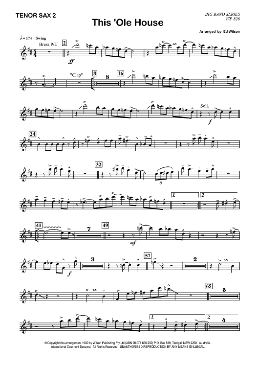 Digital Sheet Music for This 'Ole House - Tenor Sax 2 by Ed Wilson scored for Jazz Ensemble; id:356702