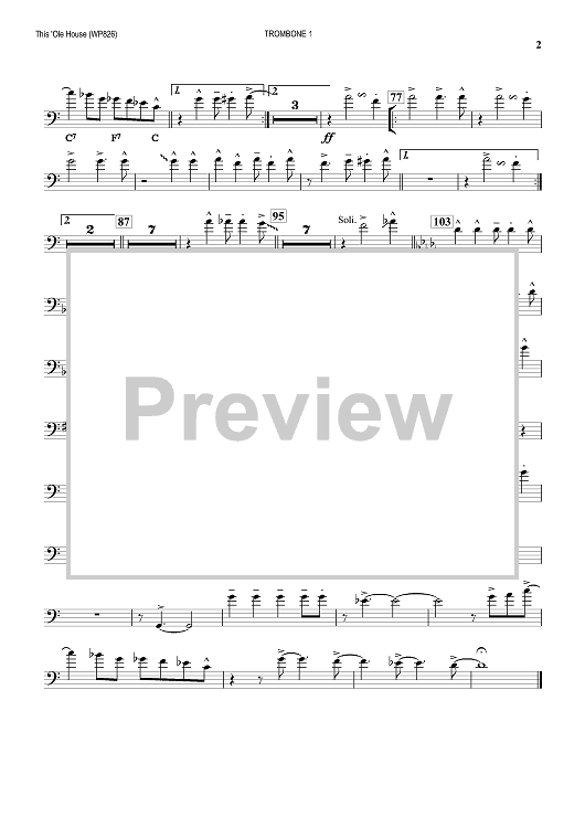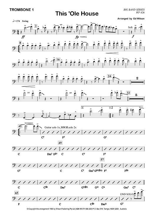 Digital Sheet Music for This 'Ole House - Trombone 1 by Ed Wilson scored for Jazz Ensemble; id:356708