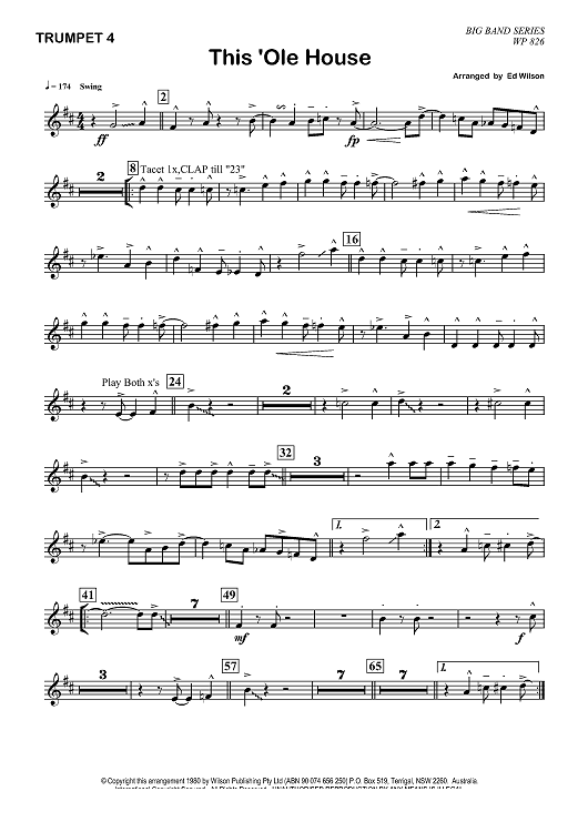 Digital Sheet Music for This 'Ole House - Trumpet 4 by Ed Wilson scored for Jazz Ensemble; id:356707