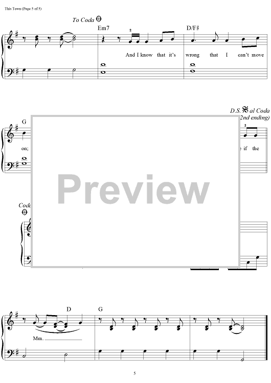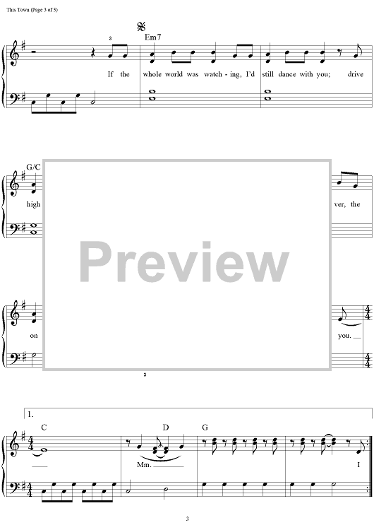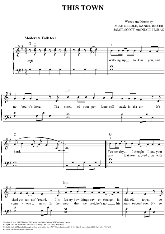 Digital Sheet Music for This Town by Niall Horan, Jamie Scott, Daniel Bryer, Michael Needle scored for Easy Piano/Vocal/Chords; id:464295