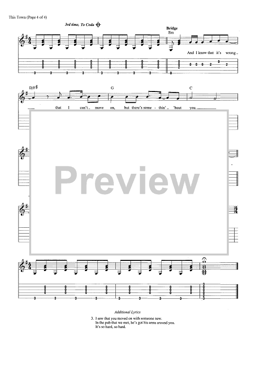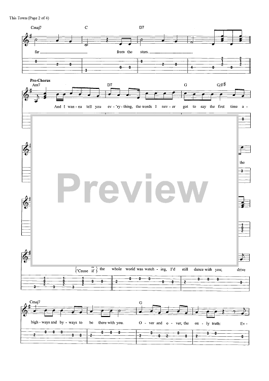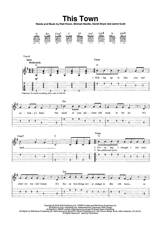 Digital Sheet Music for This Town by Niall Horan, Jamie Scott, Daniel Bryer, Michael Needle scored for Easy Guitar Tab/Vocal; id:465613